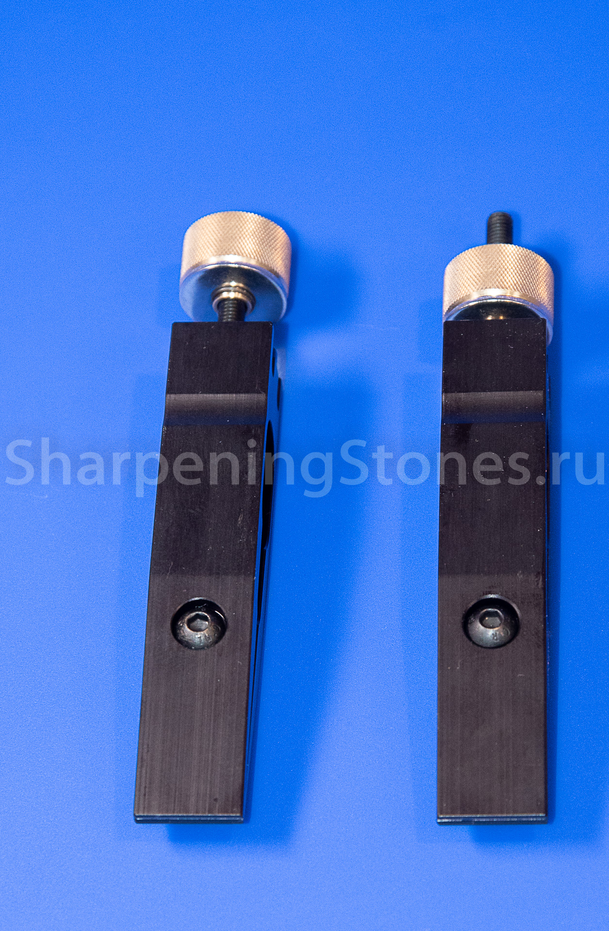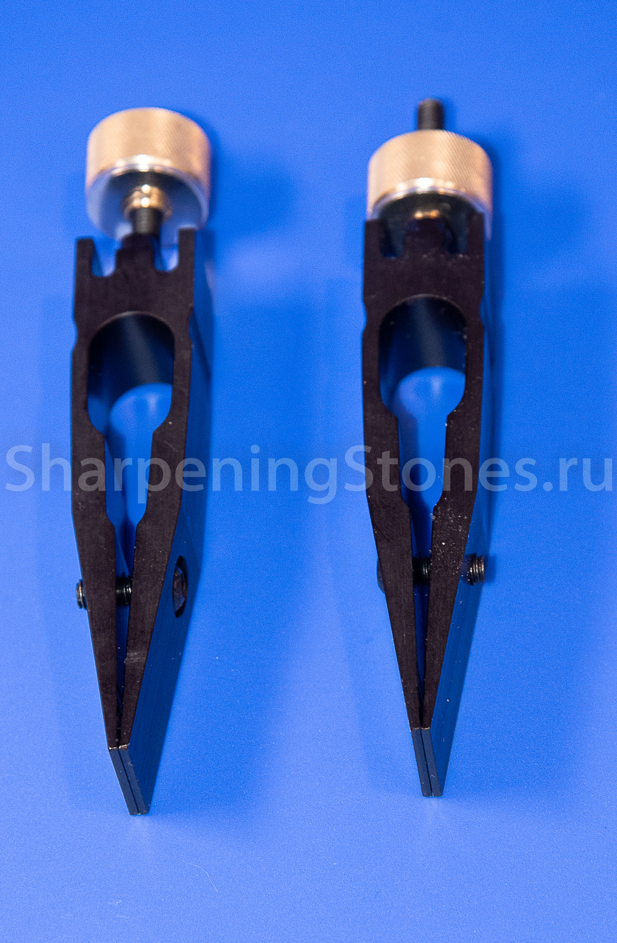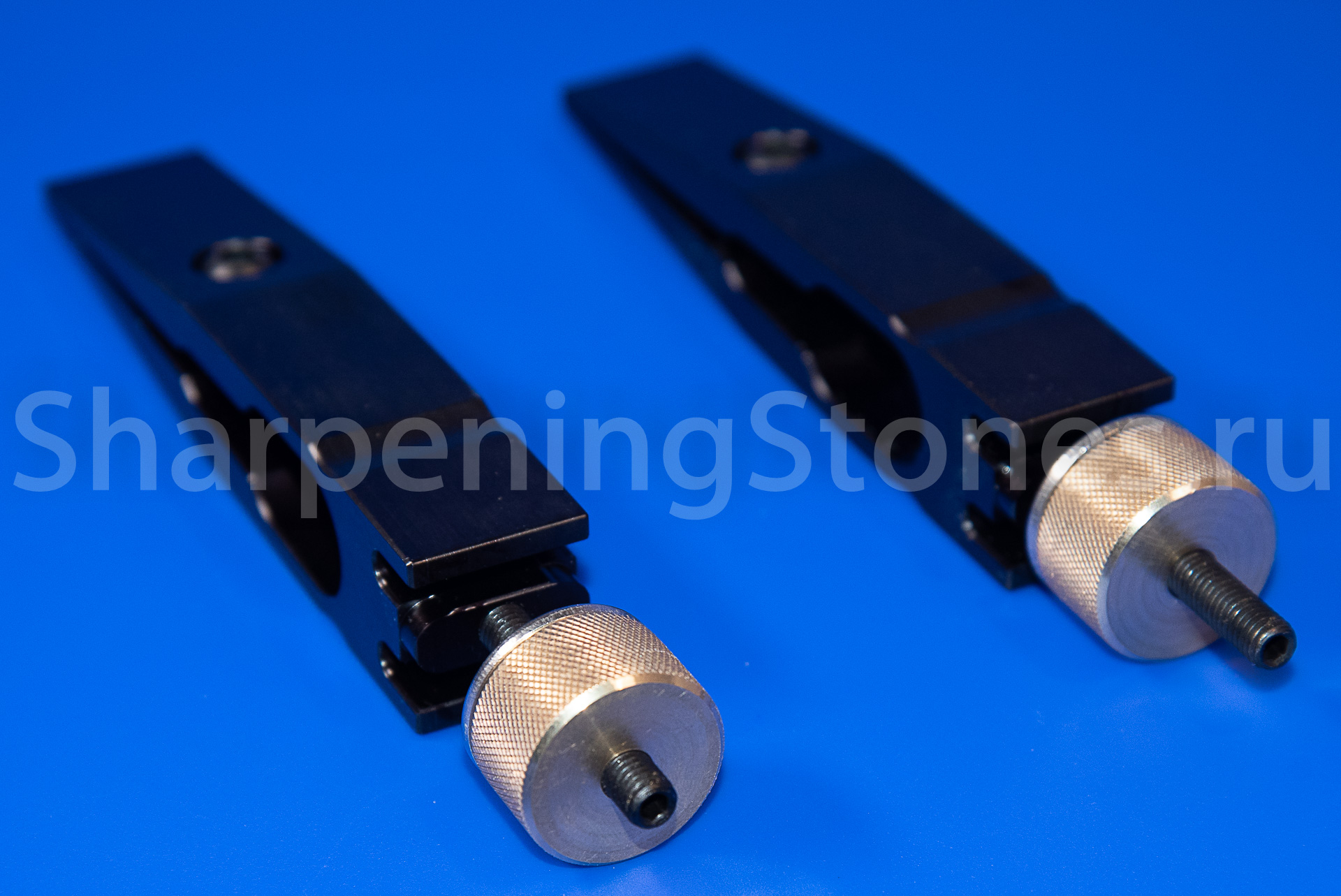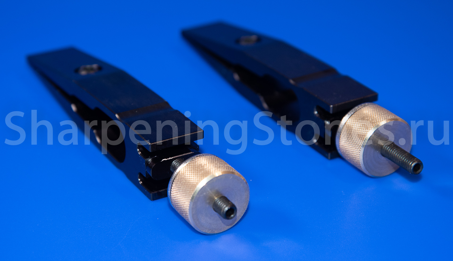 На внутренней части зажимов сделаны специальные канавки для более уверенной фиксации ножей со спусками от обуха.